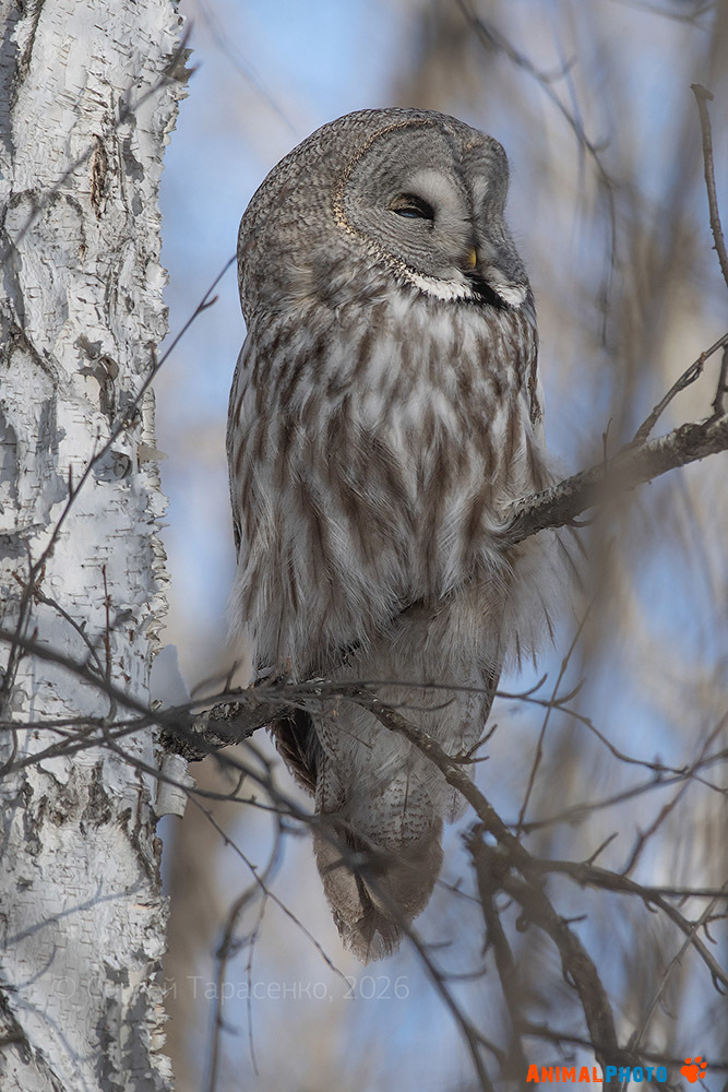 Бородатая неясыть (Strix nebulosa), февраль, 14:18