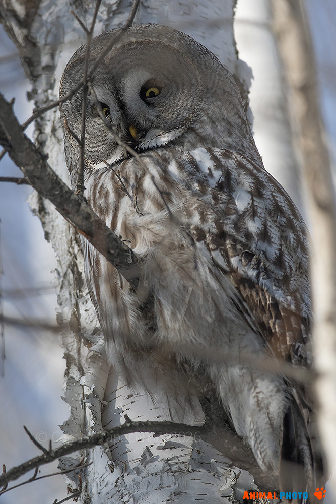 Бородатая неясыть (Strix nebulosa), февраль, 14:16